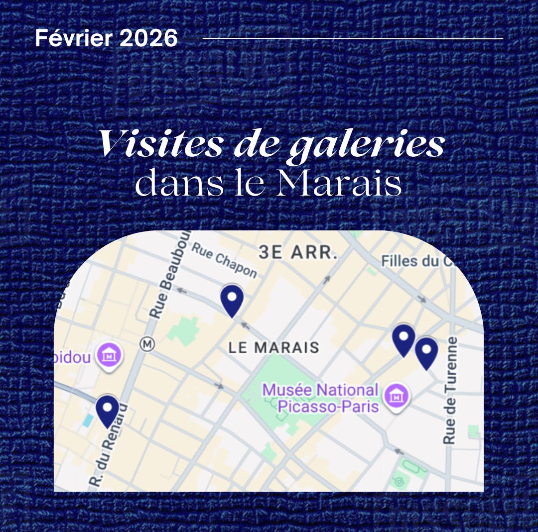 La prochaine visite de galeries aura lieu le samedi 7 février dans le Marais. Je vous donne rendez-vous à la galerie Ceysson & Bénétière (23 rue du Renard) à 14h30, pour découvrir une sélection de huit expositions dans quatre galeries pour découvrir ensemble les travaux de différents artistes, avec une dominante peinture cette fois-ci. Comme d’habitude, j’y emmène une dizaine de personnes maximum pour découvrir une sélection d’expositions en galeries. Plus d’infos sur mon Instagram @ptittournesol!